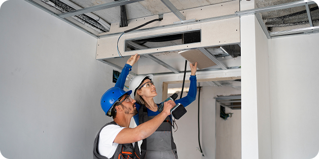 Определение оптимального места для установки кондиционера, проверка стен и потолка на прочность и готовность к монтажу креплений.